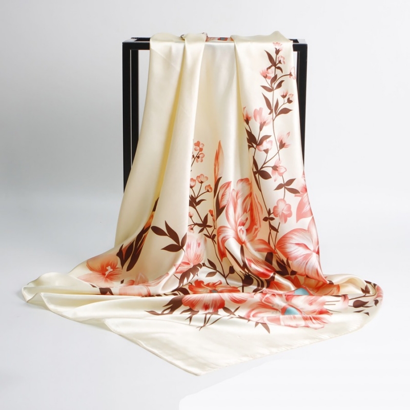 1 pc shawl satin simple flower batch printing sunscreen scarf 90*90cm#1# Wholesale