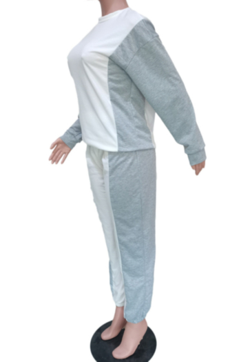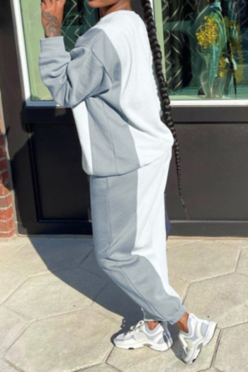 Autumn new plus size contrast color spliced micro-elastic casual minimalist two-piece set Wholesale