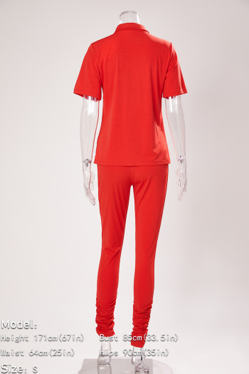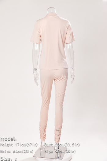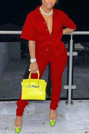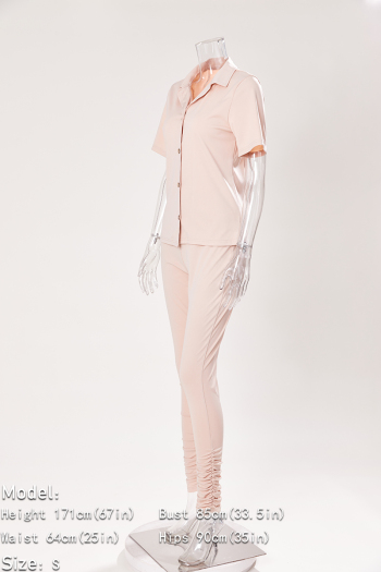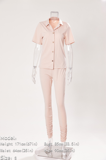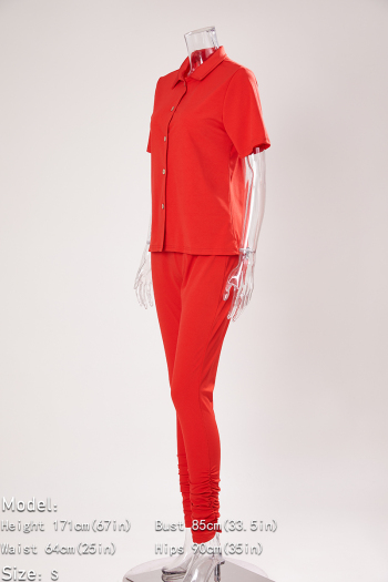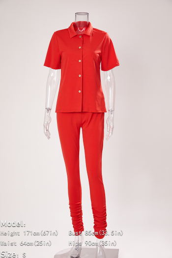 Casual plus size non-stretch simple solid color single breasted pants sets