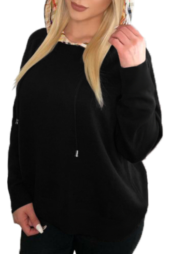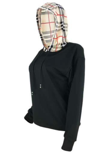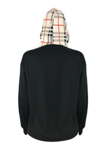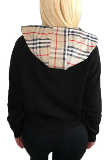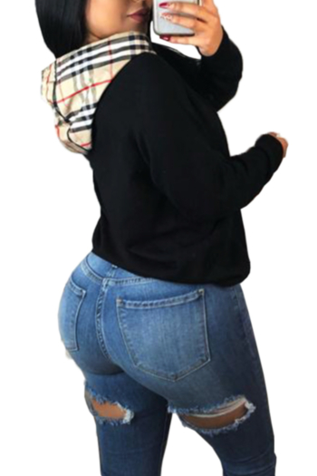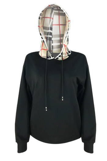 Classic plaid drawstring hooded stitching sweater top Wholesale