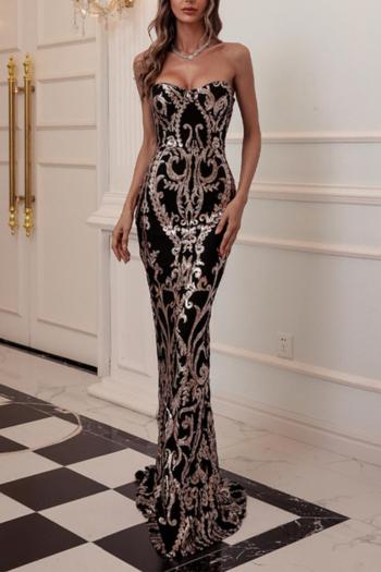 Elegant non-stretch strapless sequins zip-up mermaid maxi evening dress Wholesale Maxi&Gown