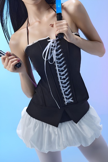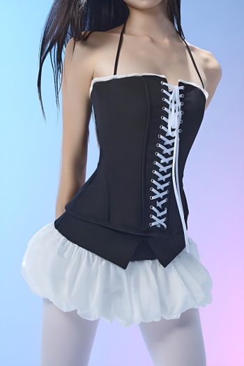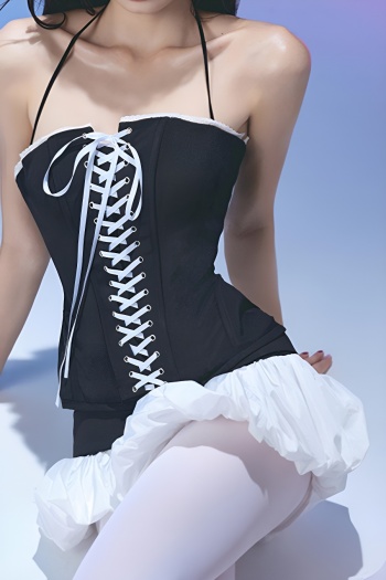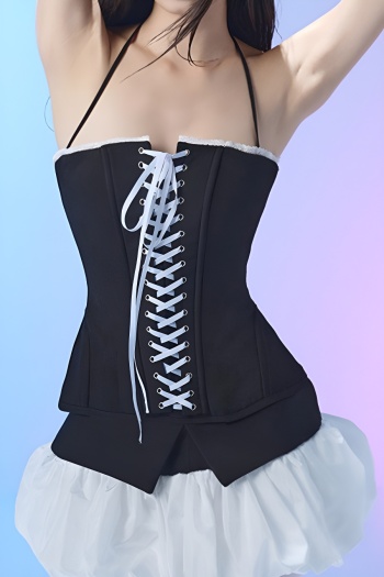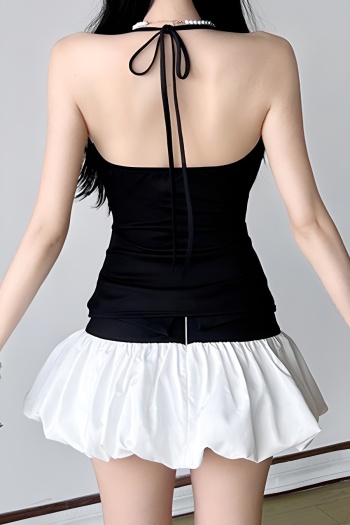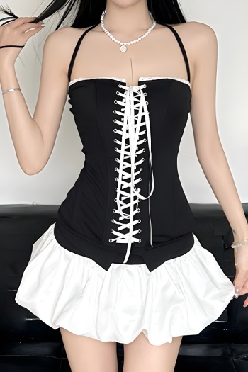 New slight stretch patchwork lace-up cinched waist tank tops & mini skirts sets