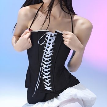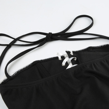 New slight stretch patchwork lace-up cinched waist tank tops & mini skirts sets Wholesale