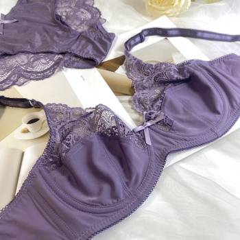 Plus size slight stretch lace trim with underwire bras sets#2 Wholesale