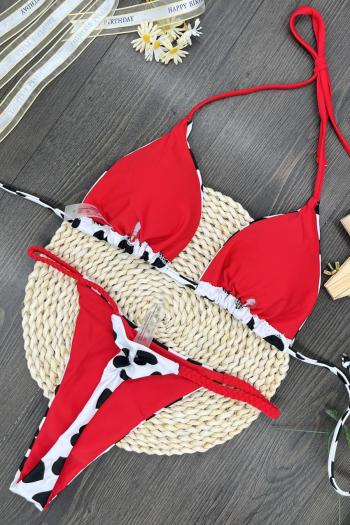 Sexy color-block heart graphic printing padded halter-neck triangle bikini set