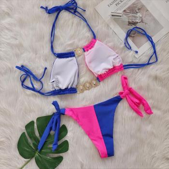Sexy exquisite color-block rhinestone 4 colors padded halter-neck bikini set Wholesale