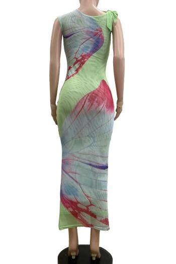 Sexy plus size slight stretch slim mesh printing maxi dress