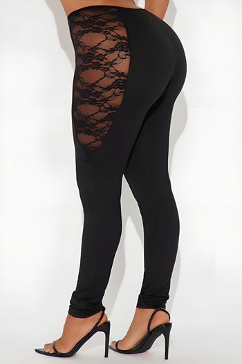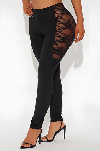 Sexy slight stretch see through lace stitching high waist all-match leggings Wholesale