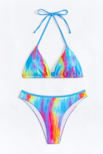 Sexy tie dye padded halter-neck lace-up triangle bikini set