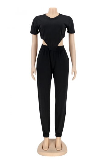Spring new stylish simple solid color pocket stretch plus size casual two-piece set Wholesale