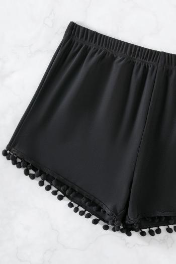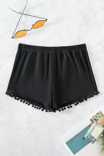 Stylish pure color fur-ball decor flat angle bikini bottoms