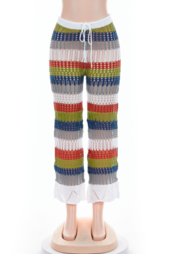 Summer new colorful stripes knitted see through sexy beach cover-ups pants