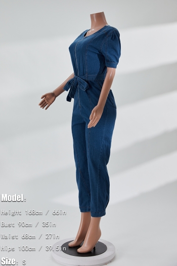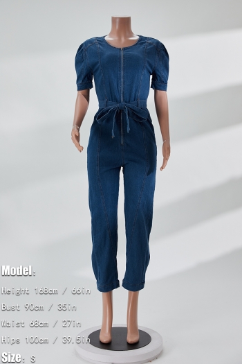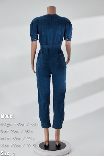 Summer new plus size slight stretch short-sleeve pockets zip-up stylish denim jumpsuit with belt