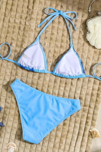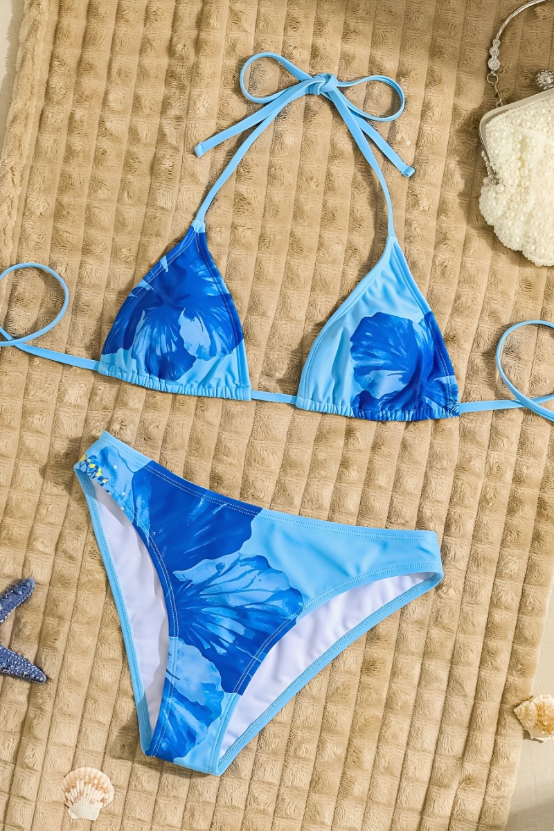 XS-L sexy floral print padded halter-neck triangle bikini set